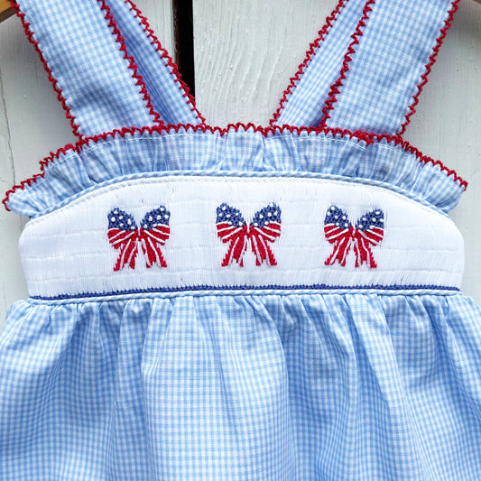 Smocked American Flag Bow Bubble