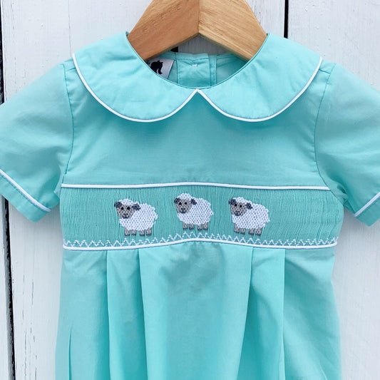 Mint Smocked Lamb Bubble for Boys