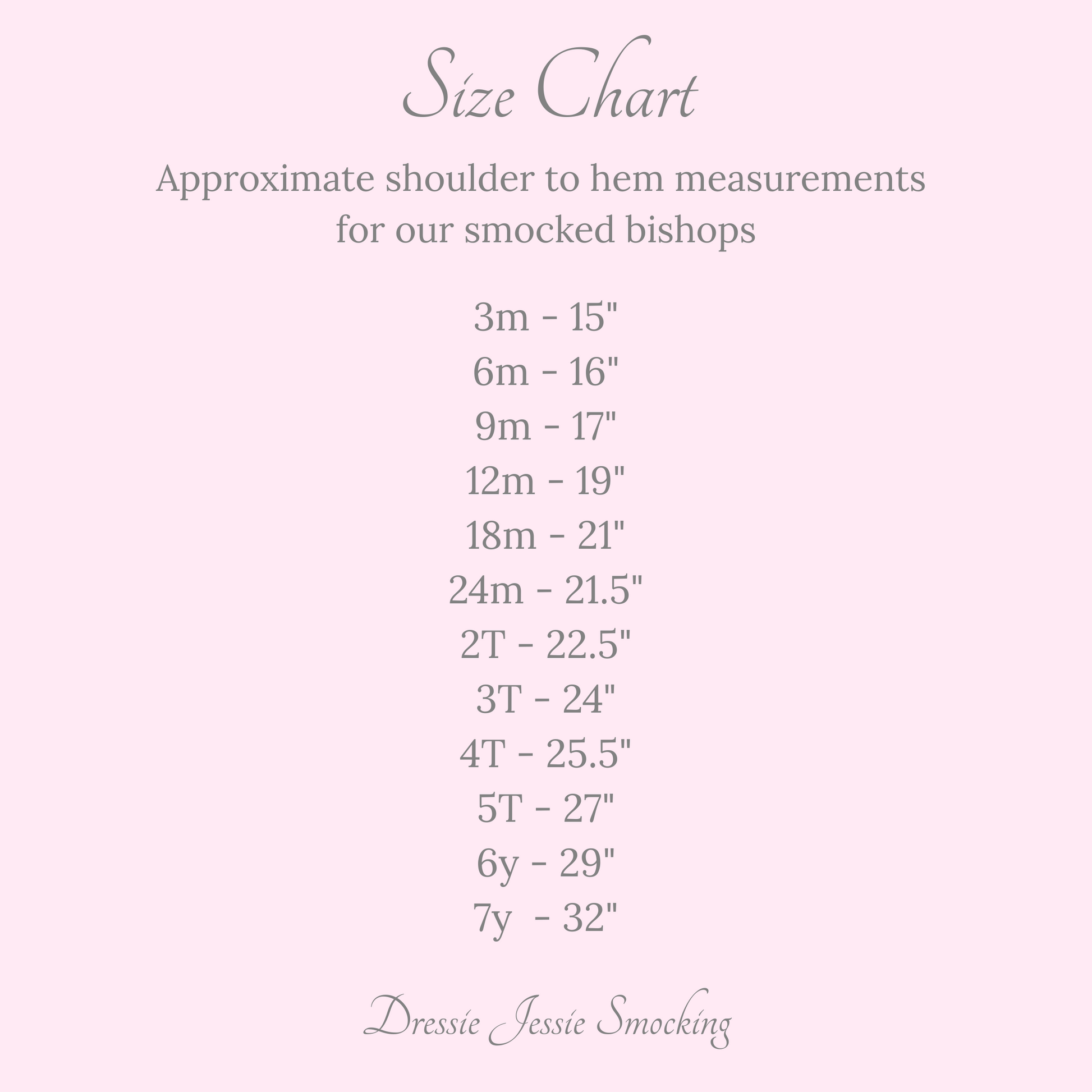 pretty blue bishop features red gingham trim and the most adorable smocked Santas